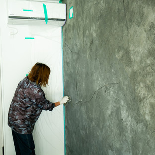 スタジオは全面壁紙なのですが、既存の壁紙の上から下地を塗り、工程を重ね、仕上げていただきました。